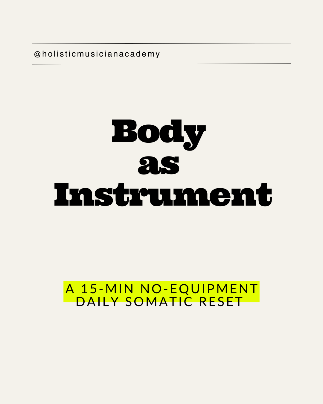 Athletes train on purpose. Creatives often wait until pain or fatigue forces the issue. Body as Instrument is a simple daily ritual to keep you clear, mobile, and ready—on stage, on camera, in studio, or at your desk.